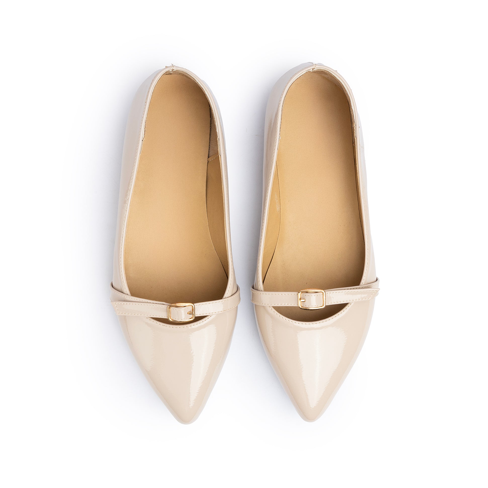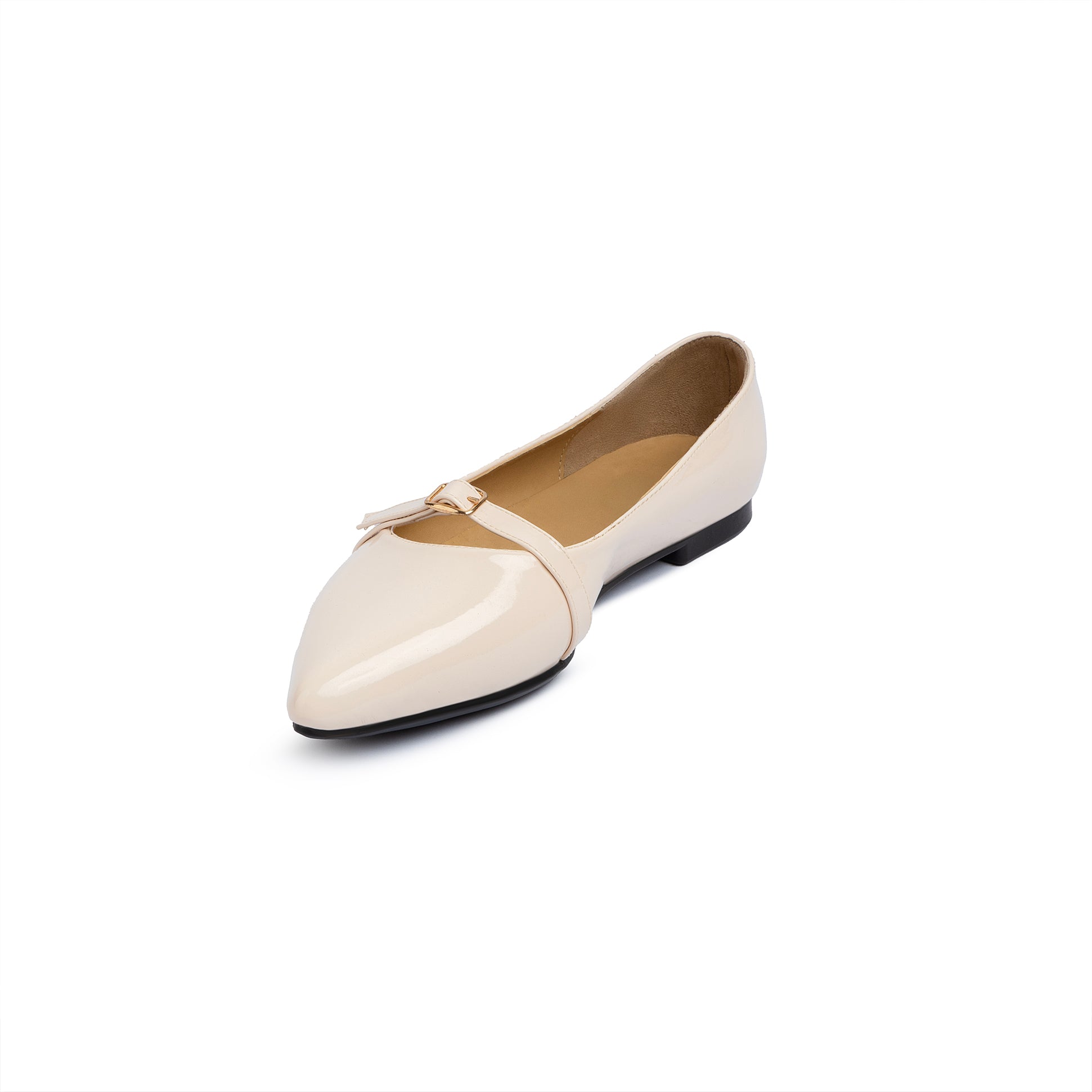Single Buckle Strap Pointy Ballerina Glazed Leather In Beige