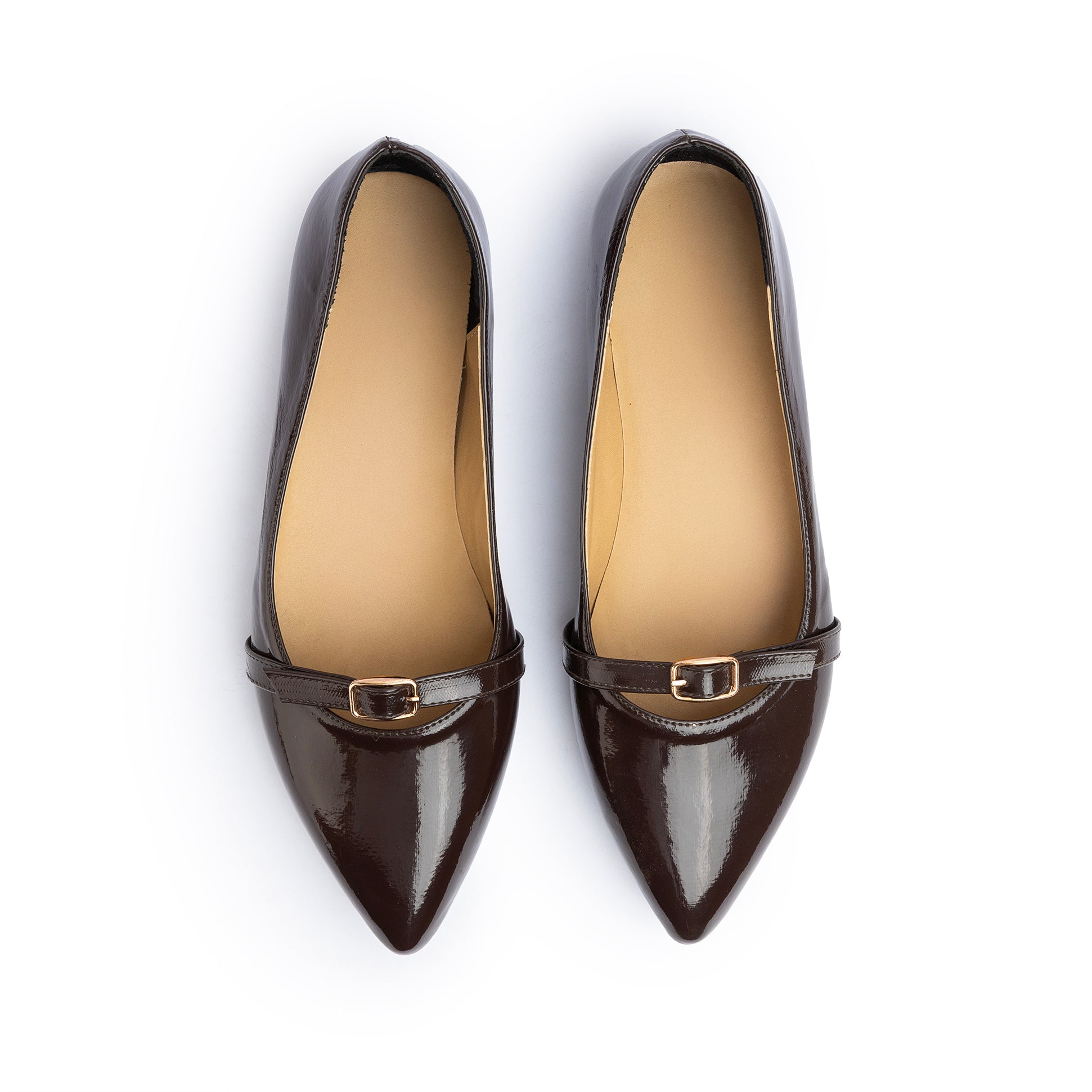 Single Buckle Strap Pointy Ballerina Vernis In Brown