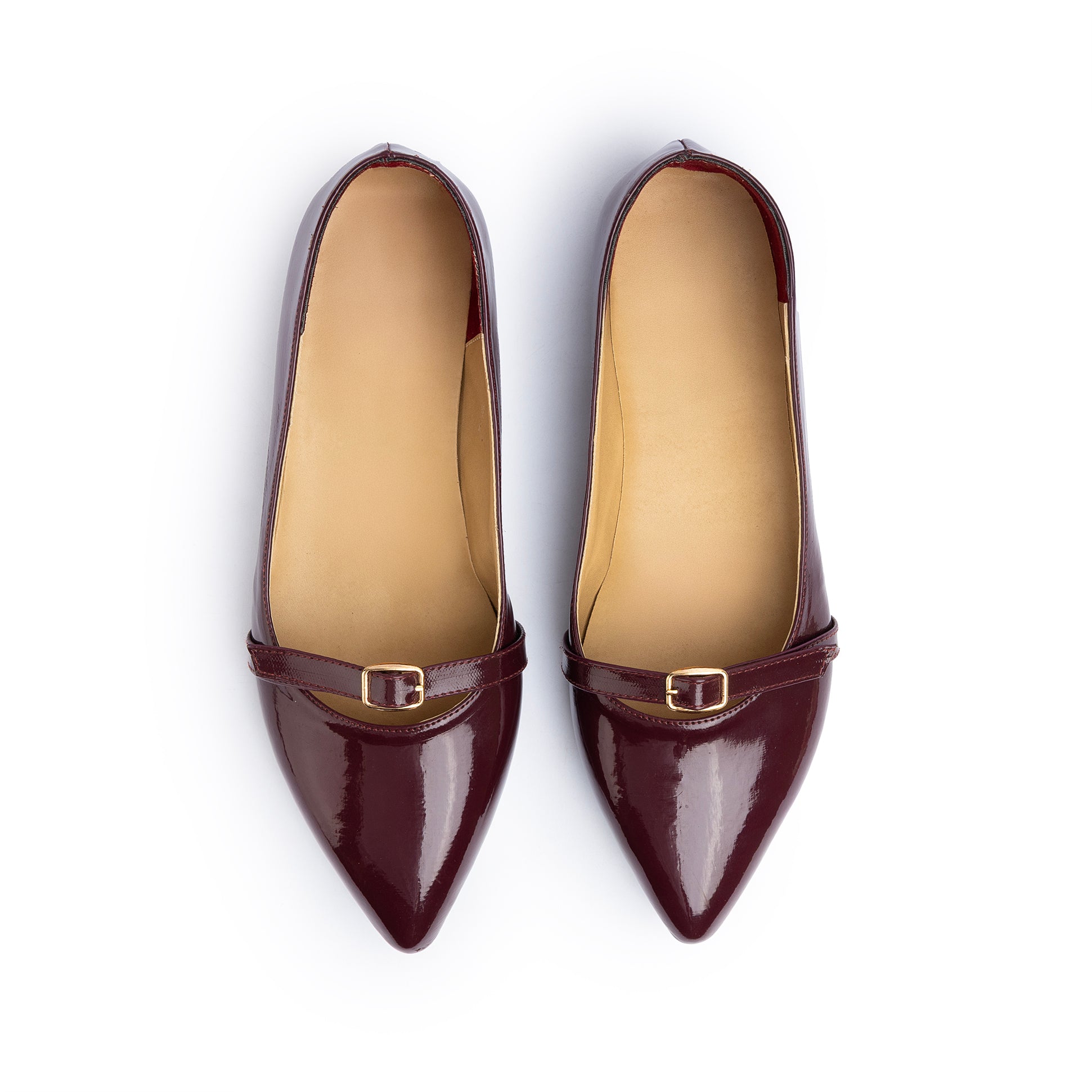 Single Buckle Strap Pointy Ballerina Vernis In Burgundy