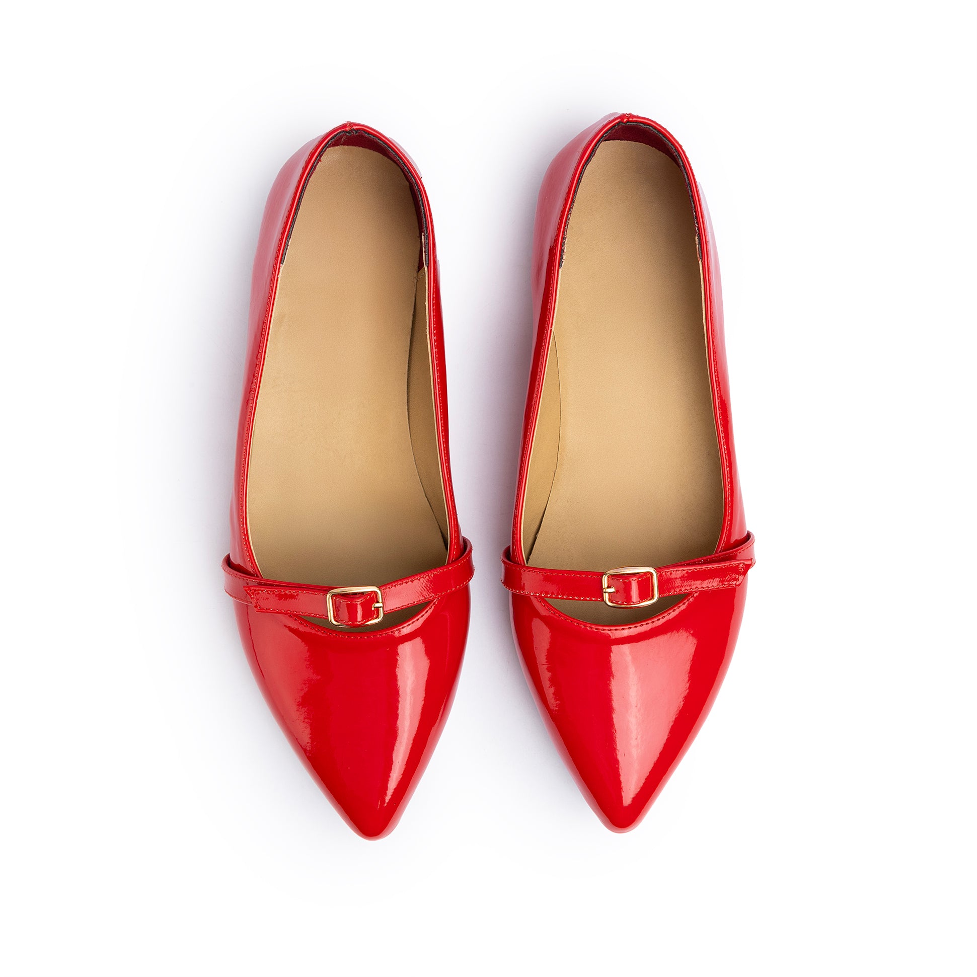 Single Buckle Strap Pointy Ballerina Vernis In Red